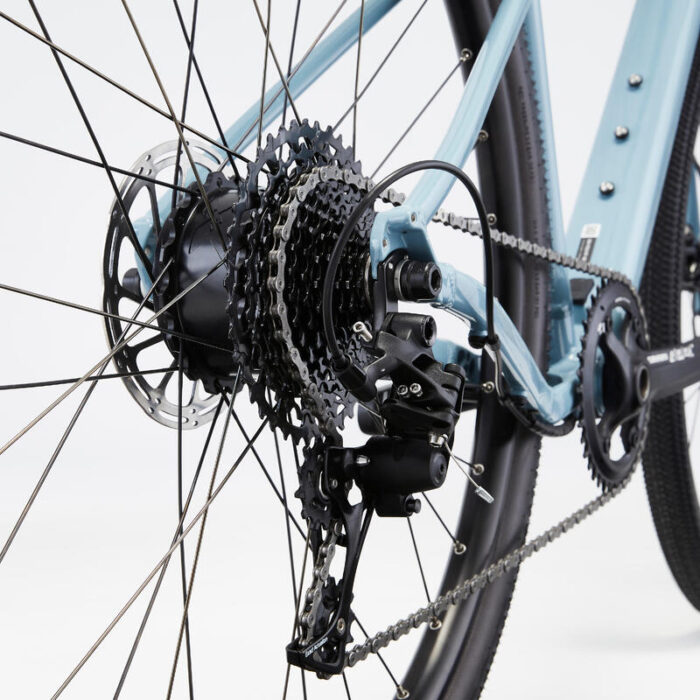 Le système d’assistance Mahle X35 de notre vélo électrique gravel amplifie votre effort en développant jusqu’à 40Nm et vous permet de venir à bout des obstacles les plus ardus grâce au choix parmi 3 niveaux d’assistance. Il sait cependant se faire discret avec l’intégration de sa batterie dans le cadre et son poids de seulement 3,5kg le rendant presque imperceptible lorsque vous n’en avez pas besoin.