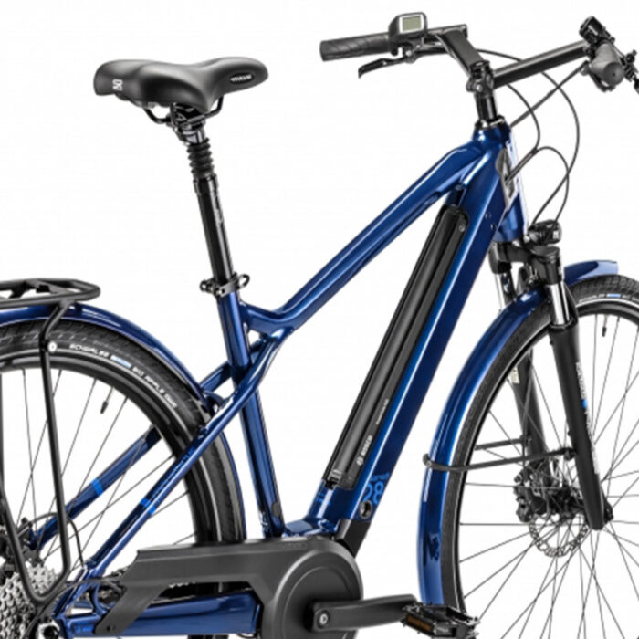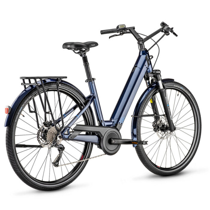 Le VTC électrique Moustache Samedi 28.2 est un VAE moderne et polyvalent, très élégant dans son coloris bleu nuit ! Ce vélo électrique a une belle identité City/Trekking : il est aussi bien à l’aise à la ville qu’à la campagne. Entre trajets quotidiens et balades tranquilles, vous avez ici un excellent vélo polyvalent pour la route !